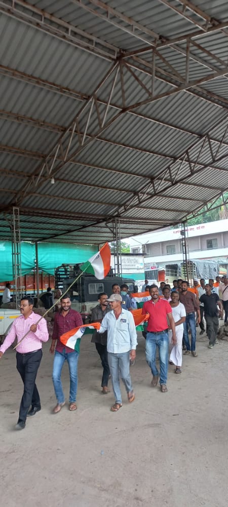 संगमनेर – स्वातंत्र्याचा अमृत महोत्सवानिमित्त बाजार समितीच्या मुख्य मार्केट यार्डात शासनाच्या आदेशान्वये दिनांक 12/08/2022 ते दिनांक 16/08/2022 विविध उपक्रम राबविण्यात आले त्यानुसार दिनांक दि. 13/08/2022 ते 15/08/2022 अखेर मुख्य मार्केट यार्डमधील कार्यालय व मेनगेट येथे विद्युत रोशनाई करण्यात आली. तसेच दिनांक 12/08/2022 रोजी बाजार समितीचे यार्डात हर घर तिरंगा या उपक्रमाची जनजागृती करण्यासाठी बाजार समितीच्या यार्डात कर्मचारी, हमाल-मापाडी यांनी रँली काढुन यार्डात येणाऱ्या प्रत्येक बाजारघटकांना हर घर तिरंगा या शासनाच्या उपक्रमाबाबत जनजागृती केली तसेच दिनांक 13/08/2022 रोजी बाजार समितीचे सचिव श्री.सतिष गुंजाळ साहेब यांचे हस्ते ध्वजवंदन करण्यात आले त्यानंतर मुख्य मार्केट यार्डात स्वातंत्र्याचा अमृत महोत्सवानिमीत्त सेल्फी पॉईंट उभारण्यात आलेला होता त्यामध्ये सर्व हमाल-मापाडी, शेतकरी, व्यापारी व इतर बाजार घटकांनी सेल्फी पॉईंटमध्ये सेल्फी घेण्याचा आनंद लुटला तसेच दिनांक 14/08/2022 रोजी मा.जिल्हा उपनिबंधक, सहकारी संस्था, अहमदनगर मा.उपनिबंधक, सहकारी संस्था, संगमनेर यांचे मार्गदर्शनाखाली सर्व सहकारी संस्थेच्या रँलीमध्ये बाजार समितीचे सर्व कर्मचारी सहभागी झाले त्यानंतर मा.कांदळकर साहेब, उपनिबंधक, सहकारी संस्था,संगमनेर व मा.वाकचौरे साहेब, सहा.निबंधक, सहकारी संस्था, संगमनेर यांचे उपस्थितीत बाजार समितीच्या आवारात वृक्षारोपण करण्यात आले त्यांनतर दिनांक 13/08/2022 ते दिनांक 15/08/2022 रोजी मा.तहसिलदार कार्यालय व प्रांत कार्यालय यांनी आयोजित केलेल्या क्रिकेट स्पर्धेत कर्मचारी हमाल मापाडी सहभागी झाले तसेच दिनांक 15/08/2022 रोजी मुख्य मार्केट यार्डमध्ये बाजार समितीचे सचिव श्री.सतिष गुंजाळ यांचे हस्ते ध्वजवंदन करण्यात आले अशाप्रकारे बाजार समितीने स्वातंत्र्याचा अमृत महोत्सव निमित्त विविध उपक्रम राबविले. त्यानंतर दि.17/08/2022 रोजी सकाळी ठिक 11.00 वाजता समुह राष्ट्रगीत गायन केले.